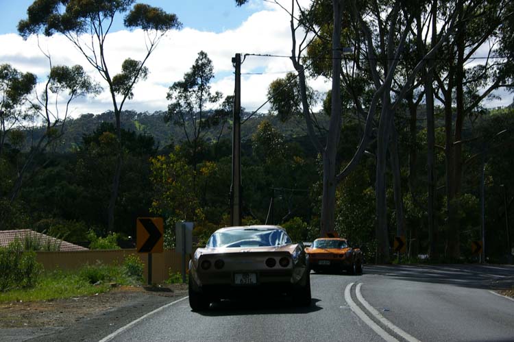 Bathurst was on TV, it was a pleasant sunny morning, and six corvettes and a 4 X 4 met at Blackwood. Members from Mt Gambier (Peter and Wendy) were also at Montagna Café to meet local members, [having been in the club for 12 months but had not had the opportunity to meet other members] and were sorry they didn’t have the vet with them. Cruised up through Coro Valley, Clarendon, Kangarilla to Meadows for morning tea. Met two more vets at the Meadows Bakery, then continued on to Strathalbyn along Paris Creek Road. Drove through the city of Strath, to the delight of locals and visitors who admired the procession of “classic muscle”. Continued on to our destination, the Bridge Hotel at Langhorne Creek, (where we were booked for lunch), and were caught up by Stuart and Ruth who had been delayed. Meals were traditional “country Pub fare” – enjoyable, reasonably priced and large. Beware if you’re not real hungry, a bowl of wedges will feed a family of four!! The run finished with nine corvettes and a Mitsi 4 X 4, the members enjoyed the scenic drive and were happy with the meals. Some doubters said there wouldn’t be many willing to come on a run on “Bathurst Race Day”, so thanks to those who came and made for an enjoyable day. Happy cruzin’ TBS.