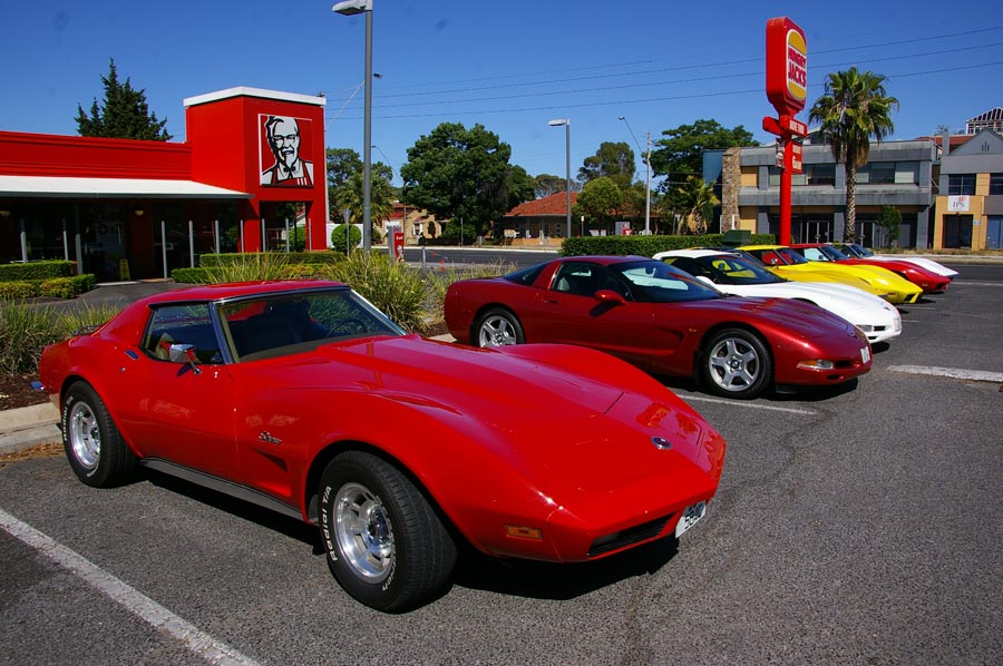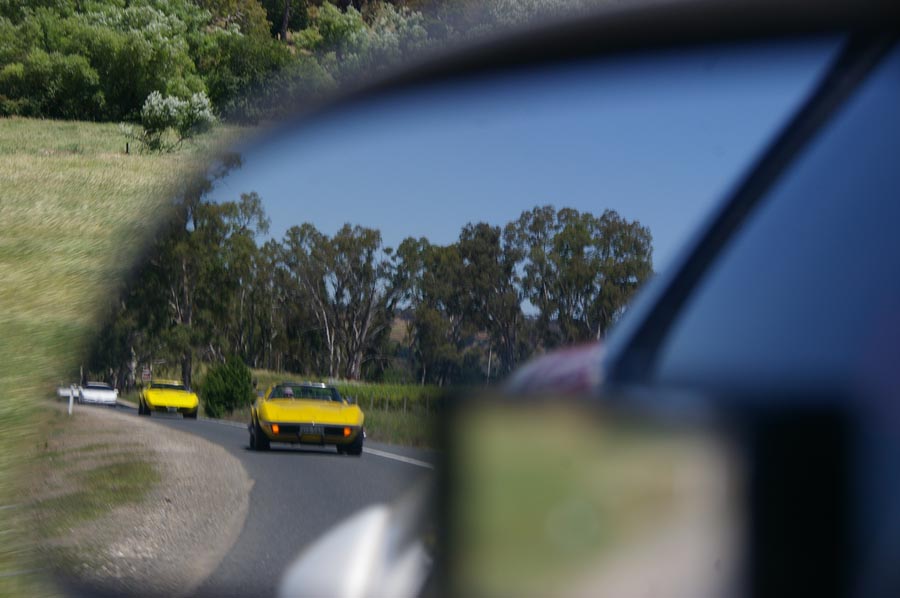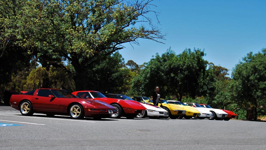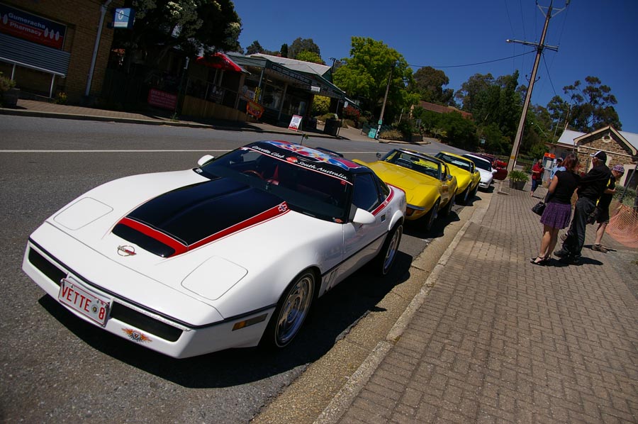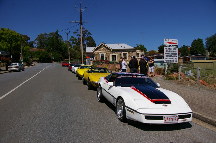 9 Corvettes rumbled up Greenhill Rd and into the hills. This part of Greenhill Rd is popular with cyclists so as responsible motorists we all ensured we gave them the 1.5m gap when passing as required by law. I'd hate to have one run into me. Fibreglass is difficult to fix.